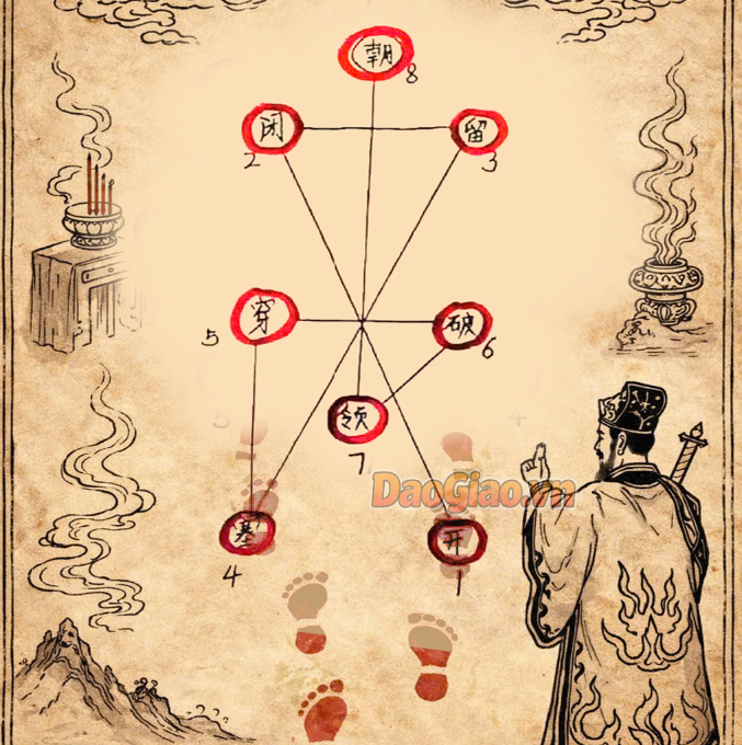 Đây không phải hình thức “đi bộ theo đồ hình” như nhiều người lầm tưởng, mà là pháp mô phỏng vận hành của Thiên Cương – Bắc Đẩu, lấy thân làm tiểu thiên địa, lấy bước chân ứng tinh vị, khiến thiên – nhân tương cảm, thần – khí tương thông.